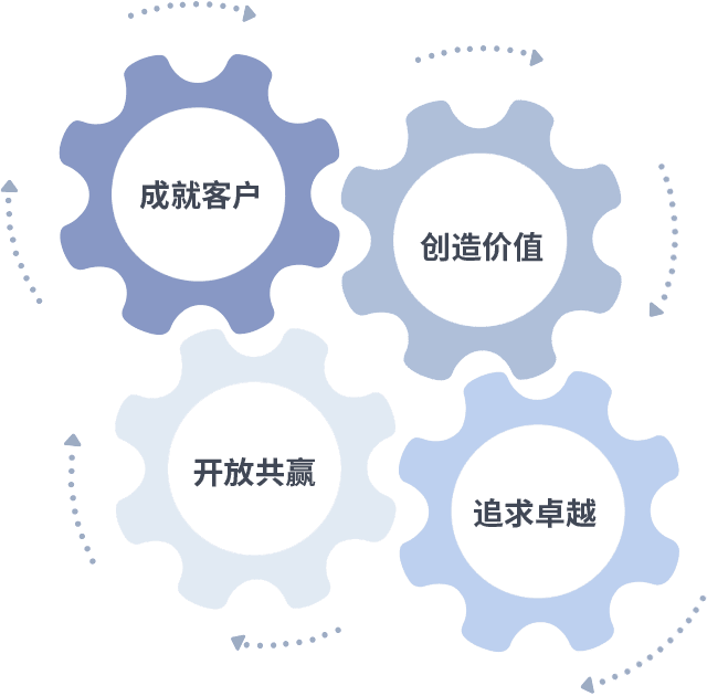 成就客户是一切决策的出发点,,,,创造价值是衡量所有工作的标准,,,追求卓越是GA黄金甲做事做人的态度,,,,开放共赢是GA黄金甲的格局也是最终的结果。。。。价值观的齿轮环环相扣,,推动着组织里的每个人不断向前。。